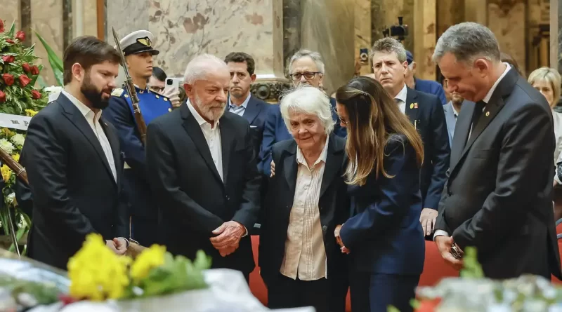 “Que a coragem, a simplicidade e o amor que marcaram sua vida sigam nos ajudando a trilhar o caminho que ele escolheu: o da luta por um mundo mais justo. E que o conforto chegue aos corações de sua amada, Lucía Topolansky, e de seu amigo e agora presidente do Uruguai, Yamandu Orsi”, escreveu Lula em postagem nas redes sociais, onde ele aparece ao lado do caixão e acompanhado do presidente Yamandú Orsi e de Lucía.