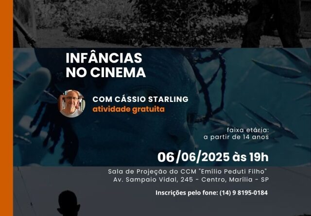 A Secretaria Municipal da Cultura está com inscrições abertas para a Oficina gratuita Pontos MIS: “Infâncias no Cinema” com o crítico e pesquisador Cássio Starling.