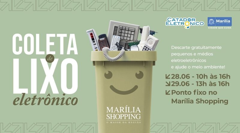 A Prefeitura de Marília, por meio da Secretaria do Meio Ambiente e Serviços Públicos, realiza mais uma importante ação voltada à sustentabilidade e ao cuidado com a cidade. Em parceria com a empresa Catador Eletrônico e com o Marília Shopping, será promovido um evento especial de coleta de resíduos eletrônicos, com ponto fixo de arrecadação, nos dias 28 e 29 de junho (sábado e domingo).