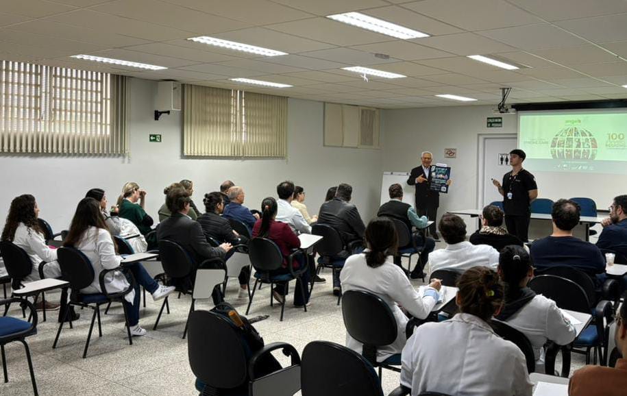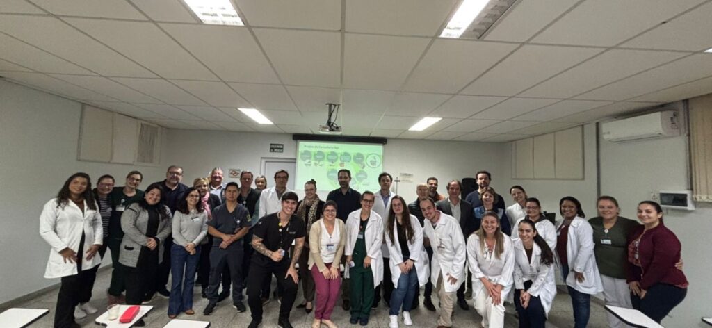 Profissionais da área assistencial da Santa Casa de Marília participaram, neste dia 24 de junho, de atividade promovida pela Angels Initiative, no salão de reuniões da instituição.