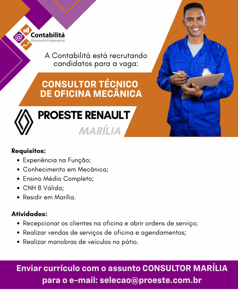 TEMOS VAGAS NA RENAULT MARILIA
