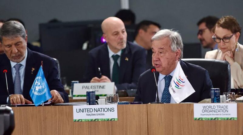 António Guterres participou da cúpula do bloco, realizada no Brasil; ele pediu aos líderes que se empenhem na garantia de uma governança inclusiva da inteligência artificial; reforma do Conselho de Segurança e da arquitetura financeira também foram pontos de destaque.