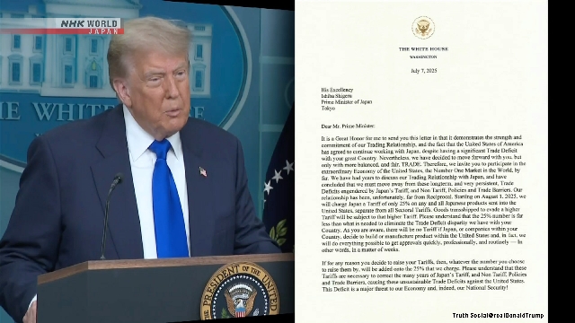 Trump publica carta ao Japão anunciando tarifa de 25%