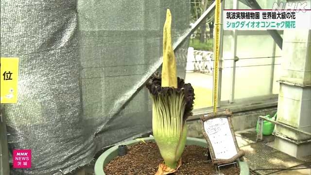 Uma das maiores e mais mal-cheirosas flores do mundo desabrochou pela primeira vez em dois anos em um jardim botânico perto de Tóquio.