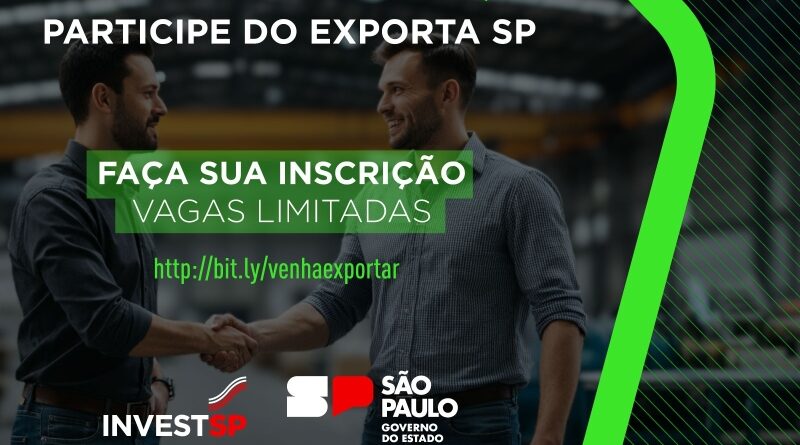 Empreendedores de qualquer região do Estado e de qualquer setor podem se inscrever, até 31 de julho, no Exporta SP, programa da Secretaria de Desenvolvimento Econômico (SDE) e da InvestSP, agência de promoção de investimentos vinculada à pasta.