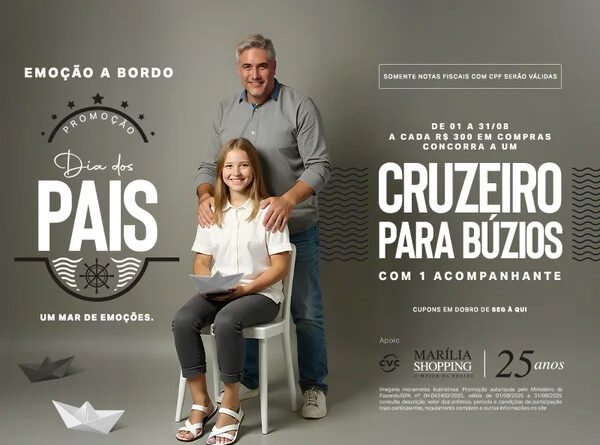 Agosto é o mês de celebrar os grandes exemplos, histórias compartilhadas e os laços que atravessam gerações. No Dia dos Pais, cada gesto conta e, pensando em tornar essa data ainda mais marcante, o Marília Shopping preparou uma campanha especial que une afeto, oportunidade e uma experiência inesquecível: a chance de ganhar um cruzeiro da CVC com acompanhante a bordo do luxuoso navio MSC Preziosa, com saída de Santos e escala em Búzios.
