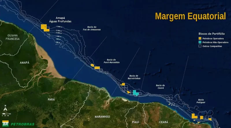 No Brasil, a área se estende do Rio Grande do Norte até o Amapá. A Petrobras tem poços na nova fronteira exploratória, mas só tem autorização do Ibama para perfurar dois, na costa do Rio Grande do Norte.