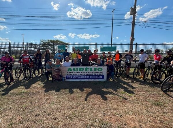 No último sábado, 30 de agosto, o ciclista Aurélio Magalhães retornou a Marília após uma viagem ao redor do mundo sobre duas rodas. O mariliense chegou por volta das 15h na Unimar e foi recebido, com muito carinho, pela família, amigos, ciclistas, lideranças e apoiadores. Compartilhou um pouco de sua história e aprendizados e, na sequência, seguiu de bicicleta, juntamente com os demais ciclistas, até a Prefeitura, onde recebeu homenagens do secretário do Trabalho, Turismo e Desenvolvimento Econômico, Vitor Gazola, da secretária de Esportes, Lazer e Juventude, Valéria Cavecci, e da Câmara Municipal, por meio do presidente Danilo Bigeschi e do vereador Wilson Damasceno.
