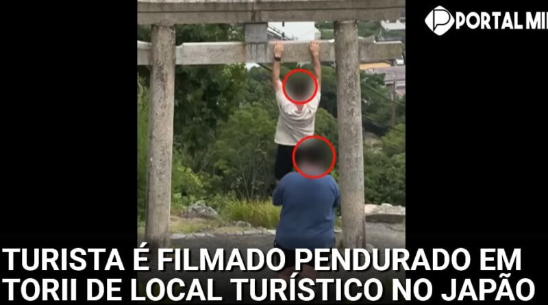 Turista estrangeiro causa indignação ao se pendurar em torii