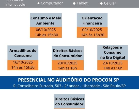 Mais informações: cursos-procon@procon.sp.gov.br