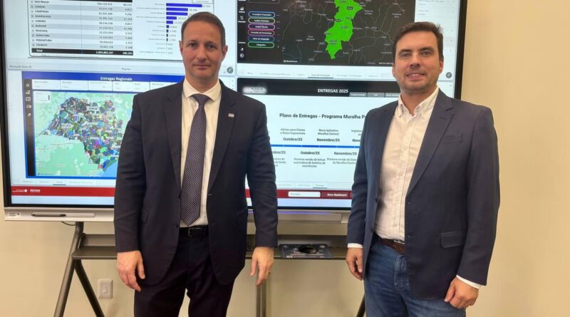 Durante o encontro, o secretário Derrite apresentou ao prefeito Vinicius algumas funcionalidades do programa Muralha Paulista, lançado pelo Governo de São Paulo em 2024.