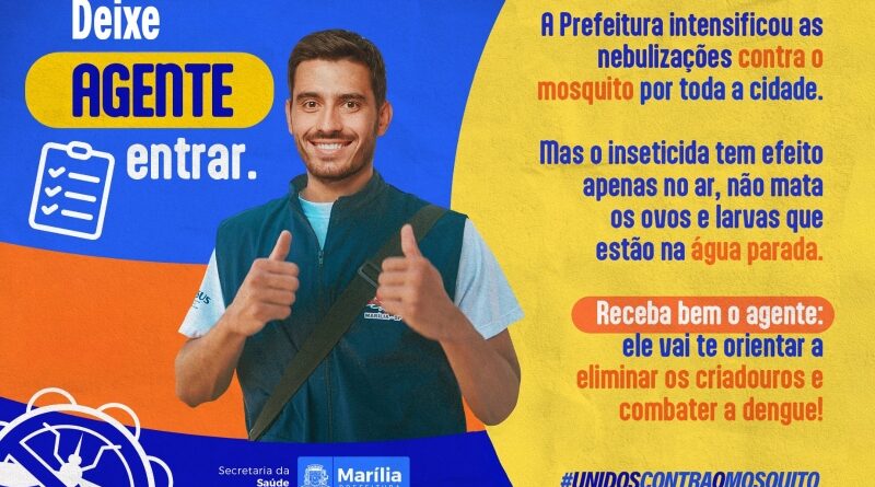 A Prefeitura de Marília, por meio da Secretaria Municipal da Saúde, promove neste sábado (1º de novembro), no período da manhã, nos bairros Jardim Renata e Núcleo JK, a 4ª ação especial de combate ao mosquito Aedes Aegypti.