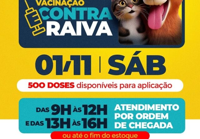 Prefeitura realiza vacinação antirrábica neste sábado (01) na USF Jóquei Clube