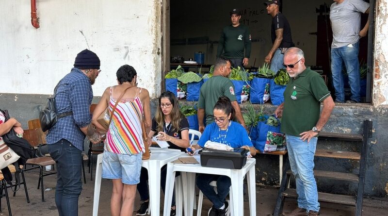 A distribuição foi realizada na Vila Agro – Casa do Produtor Rural, onde as famílias retiraram seus kits compostos por frutas, verduras, legumes e raízes, produzidos por 19 agricultores participantes do programa.