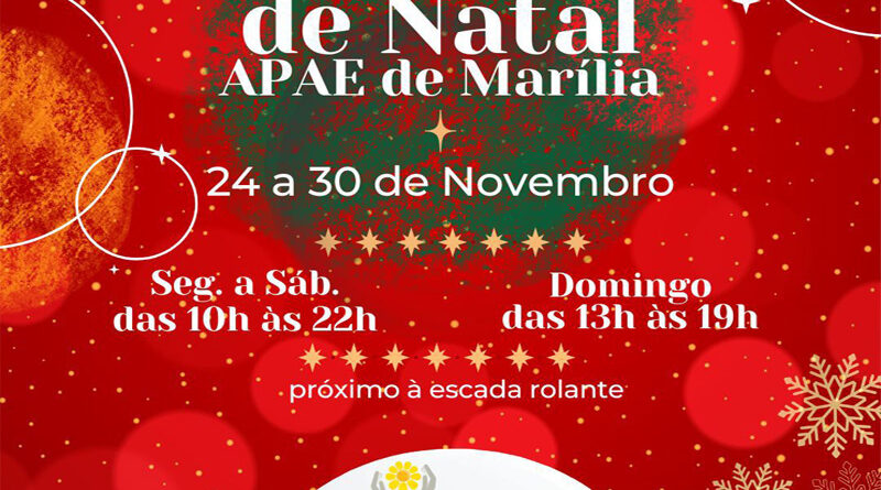 A Associação de Pais e Amigos dos Excepcionais (APAE) de Marília promove até 30 de novembro, seu tradicional Bazar de Natal. O evento será realizado no Marília Shopping, reunindo uma ampla variedade de produtos artesanais confeccionados pelo grupo de voluntárias da associação.