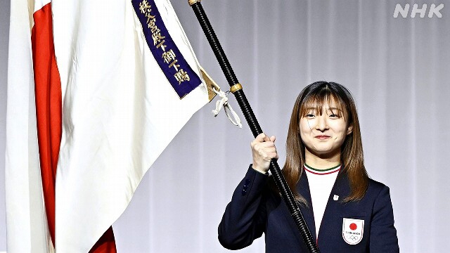 A atleta discursou em nome da equipe. Prometeu que os atletas japoneses terão uma atuação enérgica e vigorosa, mantendo constante otimismo nos Jogos.
