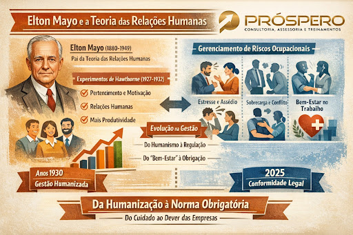 Elton Mayo foi pioneiro ao mostrar que fatores humanos e psicossociais influenciam diretamente a produtividade; a NR1 psicossocial atualiza essa visão ao transformar o bem-estar e os riscos psicossociais em obrigação regulatória e estratégica para empresas.