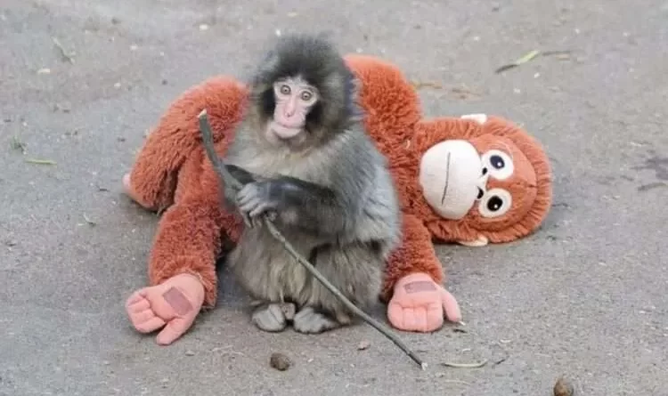 Rejeitado pela mãe, filhote de macaco se apega a bicho de pelúcia e faz sucesso em zoológico no Japão