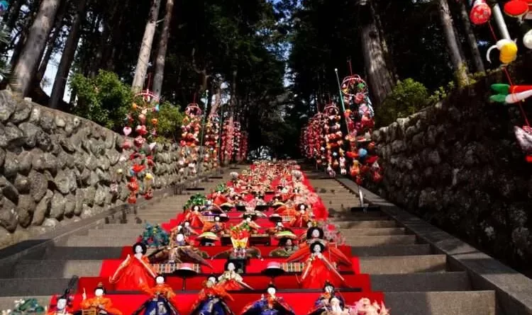 Até o dia 8 de março, os visitantes do Santuário Susanoo, em Higashiizu, na província de Shizuoka, poderão conferir uma deslumbrante coleção de bonecas expostas nos 118 degraus do local em celebração ao Dia das Meninas (Hina Matsuri/雛祭り).