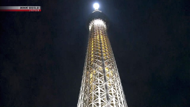A polícia de Tóquio e outros dizem que dois elevadores de acesso ao deck de observação pararam repentinamente pouco antes das 20h30 do domingo.
