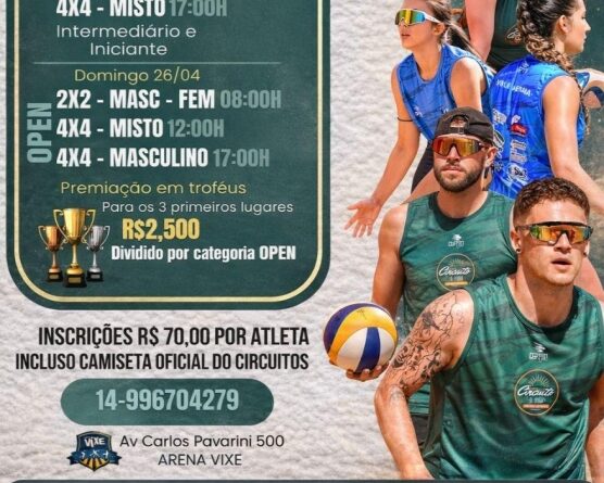 Com apoio da Prefeitura de Marília, por meio da Secretaria Municipal de Esportes, Lazer e Juventude, acontece neste final de semana, dias 25 e 26 de abril, a terceira etapa do Circuito de Verão de Vôlei de Praia.
