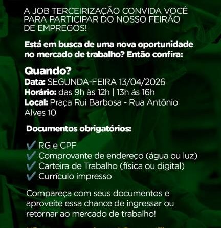 Read MoreCandidatos em busca de emprego terão uma nova oportunidade em Bauru nesta segunda-feira (13), quando a empresa Job Terceirização realizará